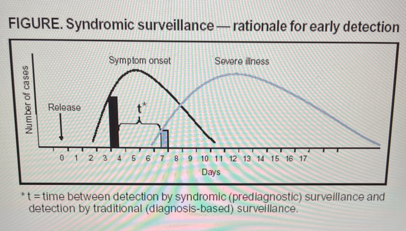 Syndromic surveillance seeks to identify illness clusters, respond quickly, and reduce morbidity and mortality.