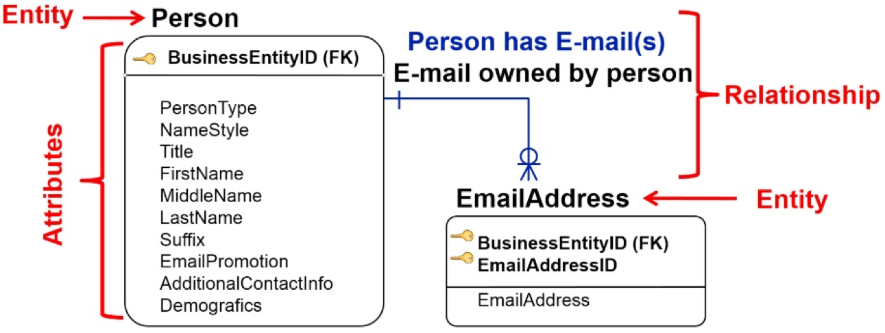 The email address entity’s primary key is a combination of BusinessEntityID and EmailAddressID