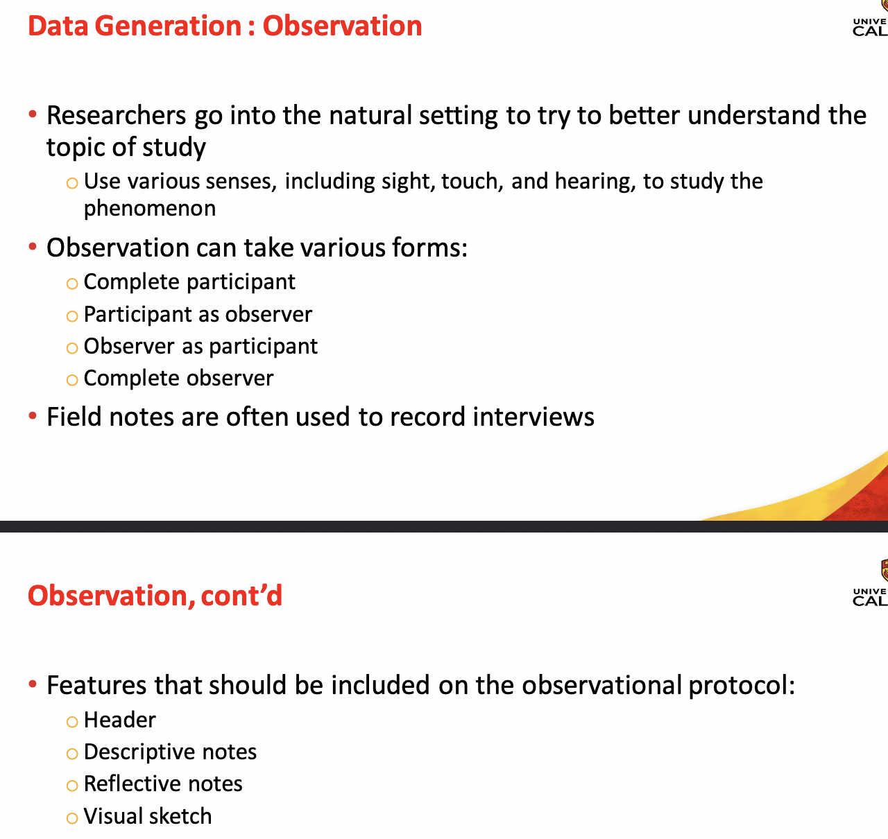 o Theoretical lens: Theory could shape the research question(s), participant selection, data generation, and data analysis