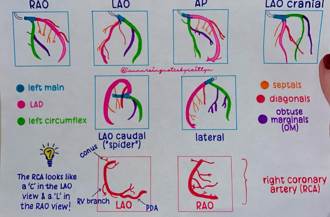 Right anterior oblique (RAO) caudal: Camera is positioned to the patient’s right and angled slightly downwards towards the feet