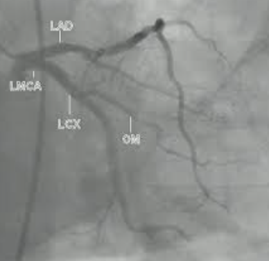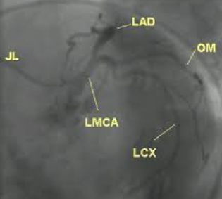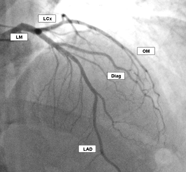 LCA and its bifurcation into the left anterior descending (LAD) and circumflex (LCX) arteries