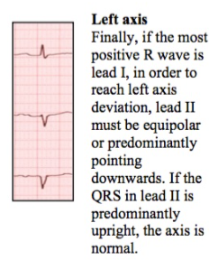 Negative deflection in lead II is what confirms left axis deviation (if it was positive deflection then it would still be considered normal axis deviation)