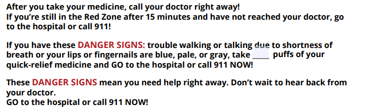 Patient’s personal best PEFR reading is used to set zones in the plan, to help them recognise and manage variable symptoms and prevent asthma attacks