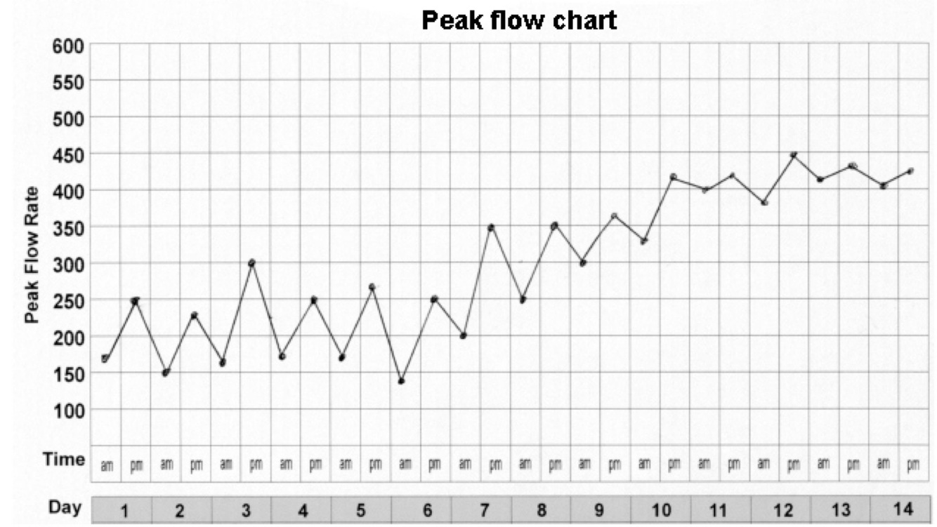 PEFR value indicates how controlled asthma is and can indicate when a flare up will occur