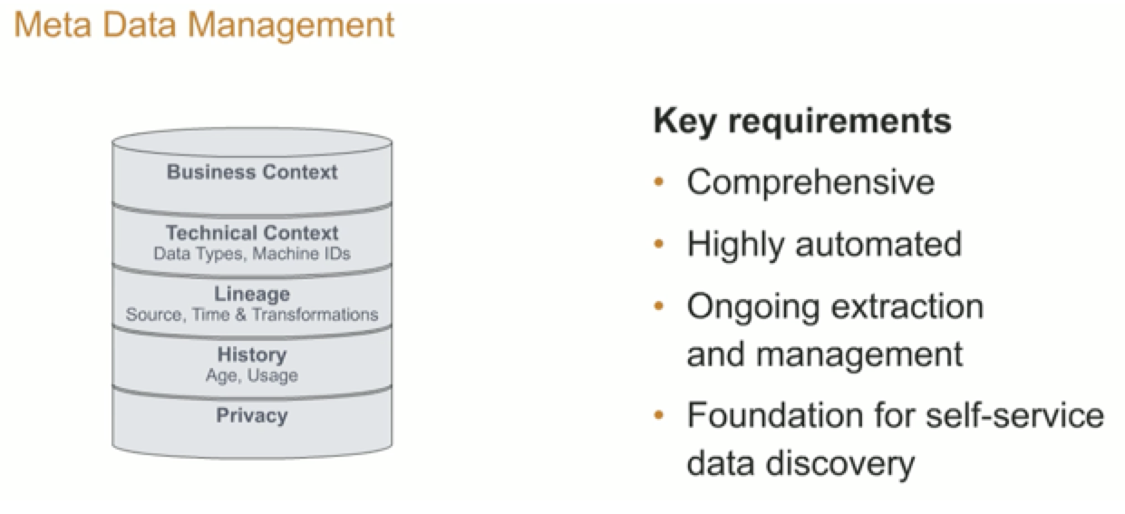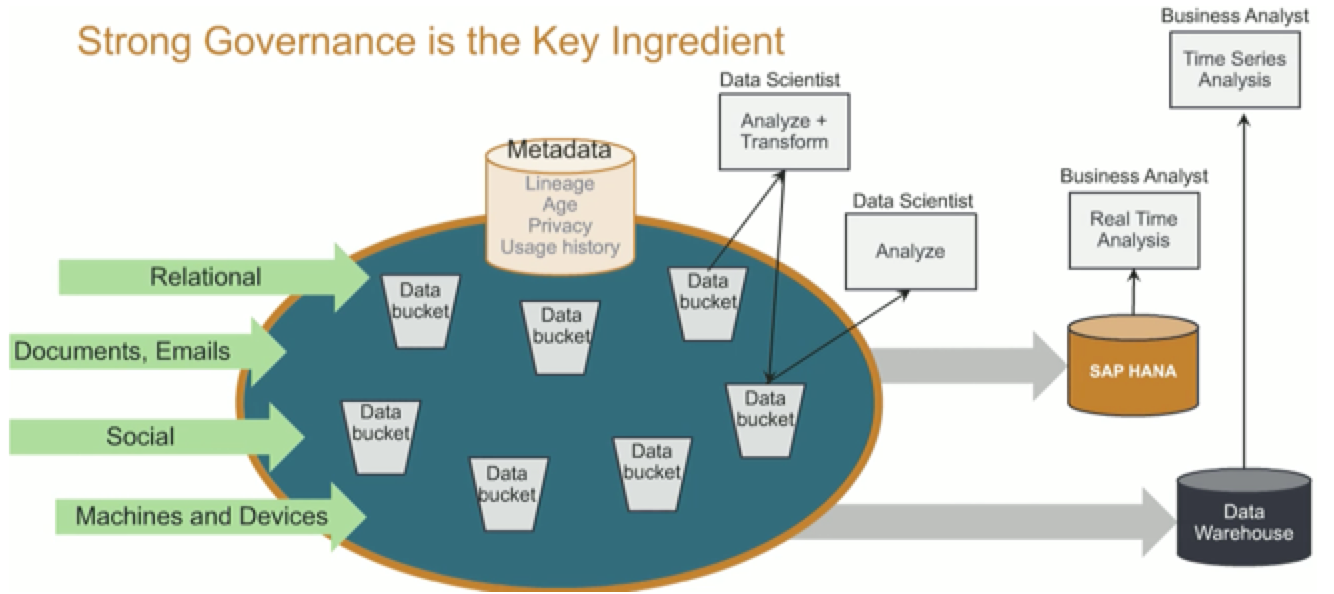The really important message is the emphasis on Governance, enabled by Metadata; keeps a record of: