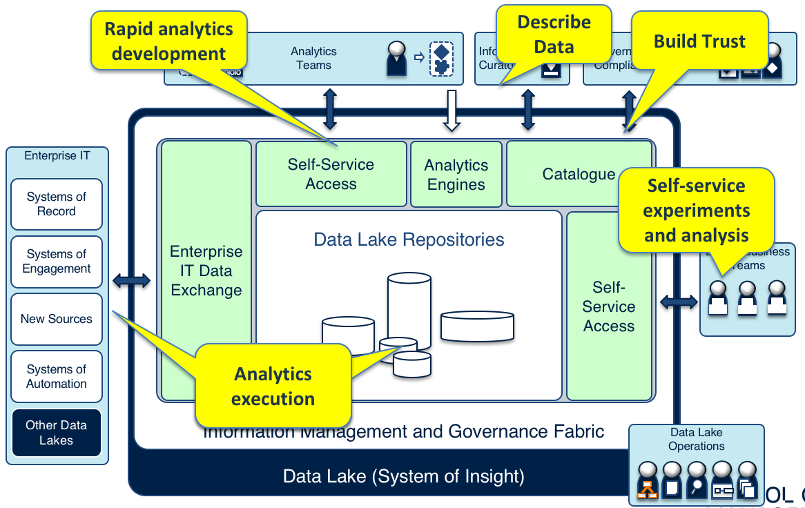 The data lake aims to provide the appropriate data access to the business in a cost effective manner that also protects and governs data.