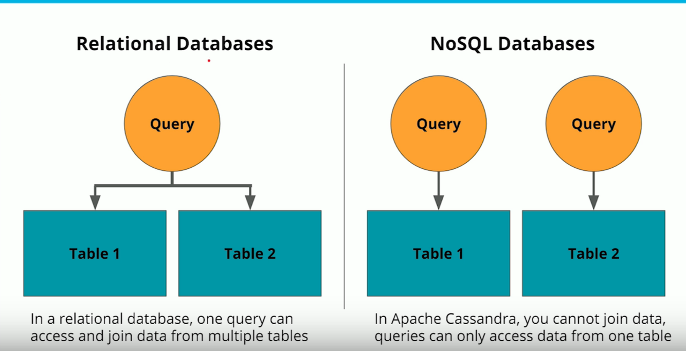 • Apache Cassandra does not allow for JOINs between tables