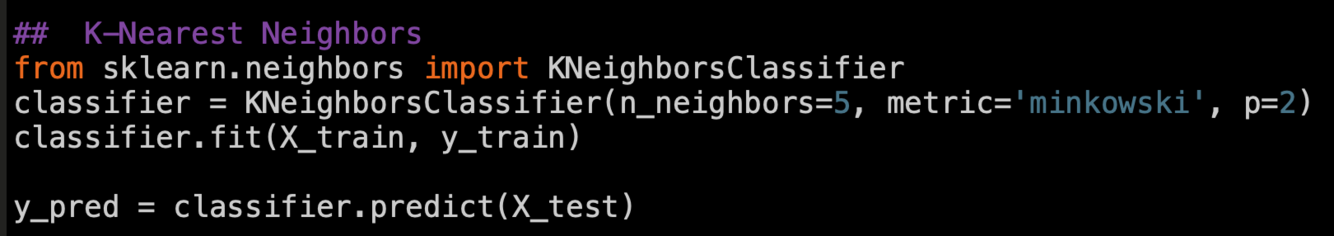 K nearest neighbors is a simple algorithm that stores all available cases and classifies new cases based on a similarity measure (e.g., distance functions). KNN has been used in statistical estimation and pattern recognition already in the beginning of 1970’s as a non-parametric techniqu