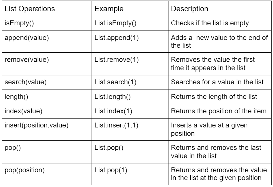 Describe the List Operations
