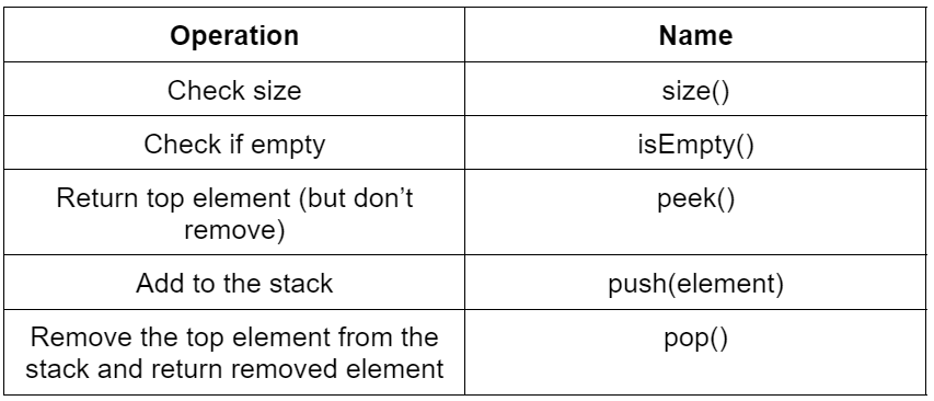 Describe the Stack Operations and Names
