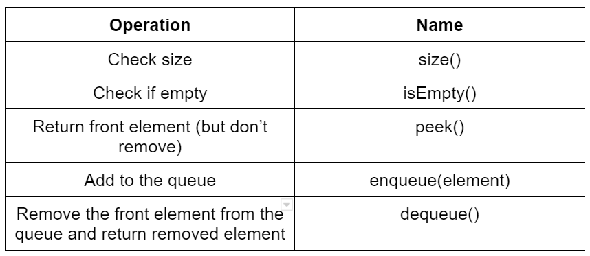 Describe the Queue Operations and Names