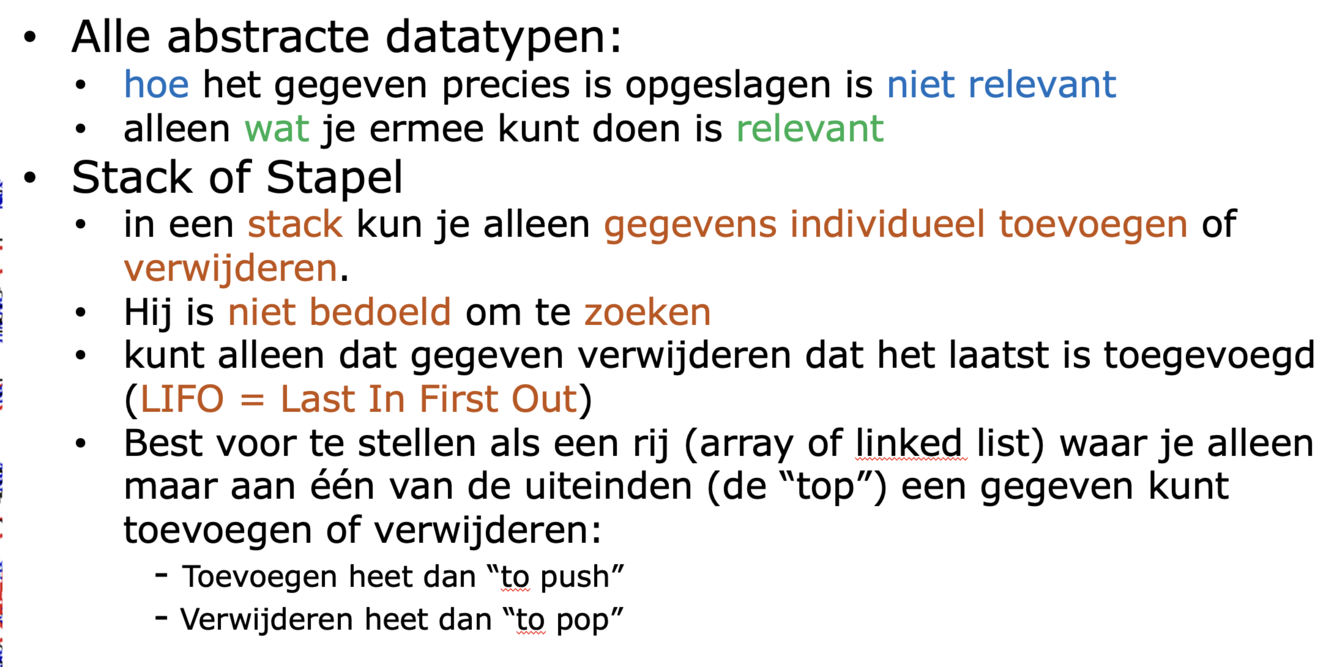 Wat zijn de kenmerken van de Stack (Stapel)?