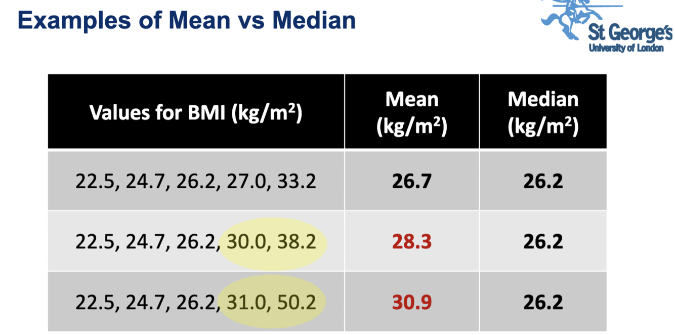 MEDIAN is better for skewed distributions because it is only slightly affected by extreme values (no matter how big they are)