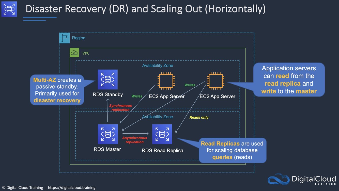Moving the database to Amazon RDS means that the database can take advantage of the built-in Multi-AZ feature. This feature creates a standby instance in another Availability Zone and synchronously replicates to it. In the event of a failure that affects the primary database an automatic failure can occur and the database will become functional on a standyby instance.