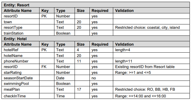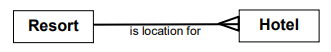 “Crow’s feet” are used to signify that an entity relationship is one to many. E.g. One resort will have many hotels.