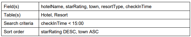 Design a search query to list the hotel name, star rating, town, resort-type, and check-in times of all hotels which allow check-in before 15:00.