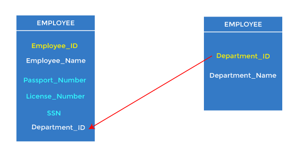 For example: In the EMPLOYEES table, id is best suited for the primary key. The rest of the attributes, like SSN, Passport_Number, and License_Number are considered a candidate key.