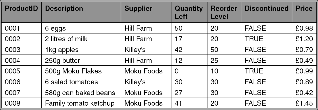 Organised - Data which is organised into records. (e.g, A school database will have a record per student)