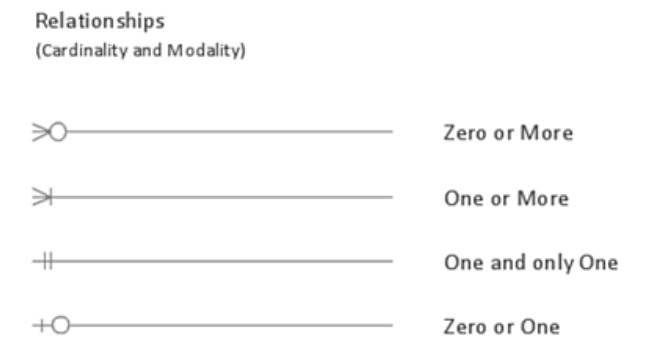 One is drawing an Entity-Relationship diagram, an ER diagram for short. As shown in the picture below, the different figures represent different data entities and the specific relationships we have between entities.