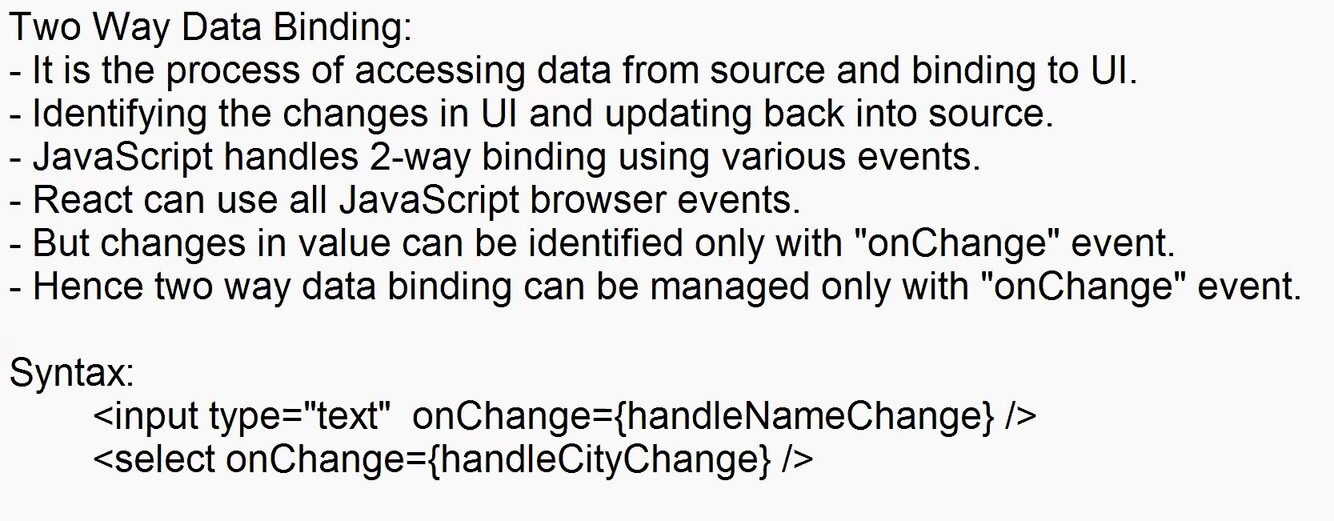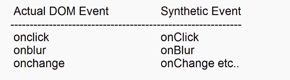 React uses a virtual DOM library called “SyntheticEvents” , which map to browser events.