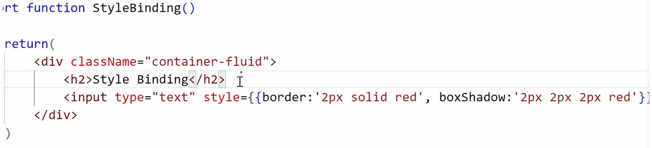 <input type=”text” style={{color:’red’}} => valid (inline Styles)
