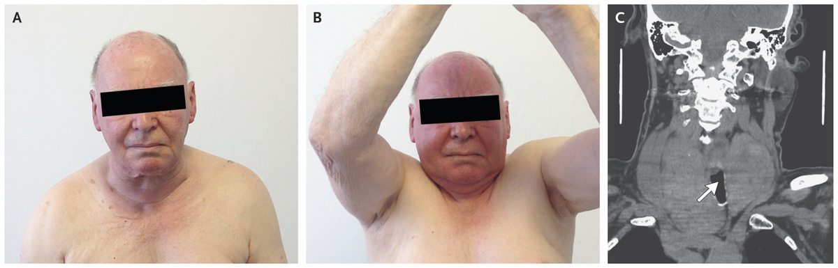 Pemberton’s test is positive.