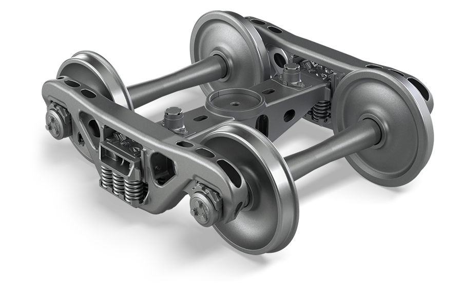 A structure underneath a railway vehicle (wagon, coach or locomotive) to which axles (and hence wheels) are attached through bearings.