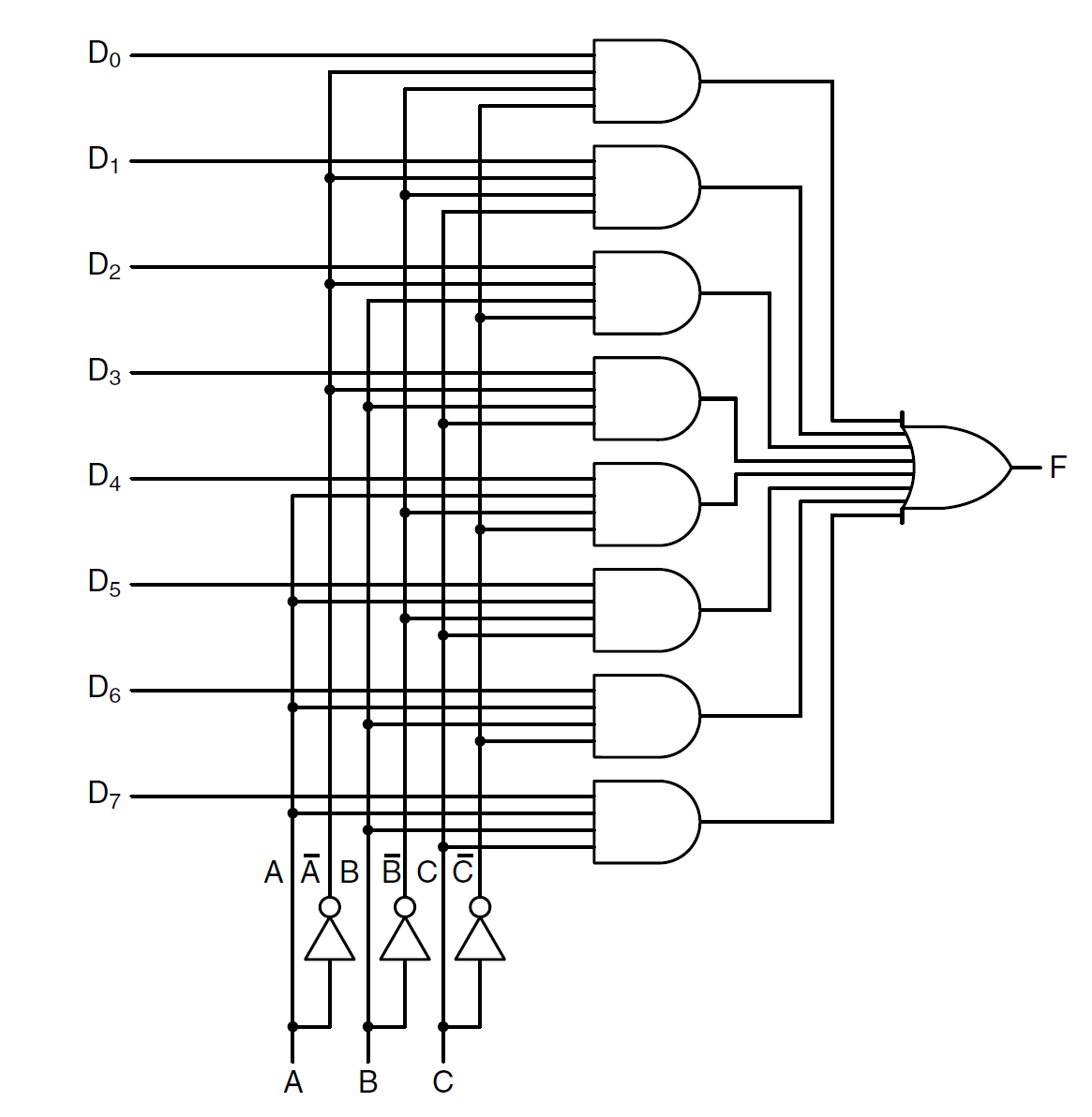 A circuit with 2^n inputs, one data output and n control inputs that select one of the data inputs