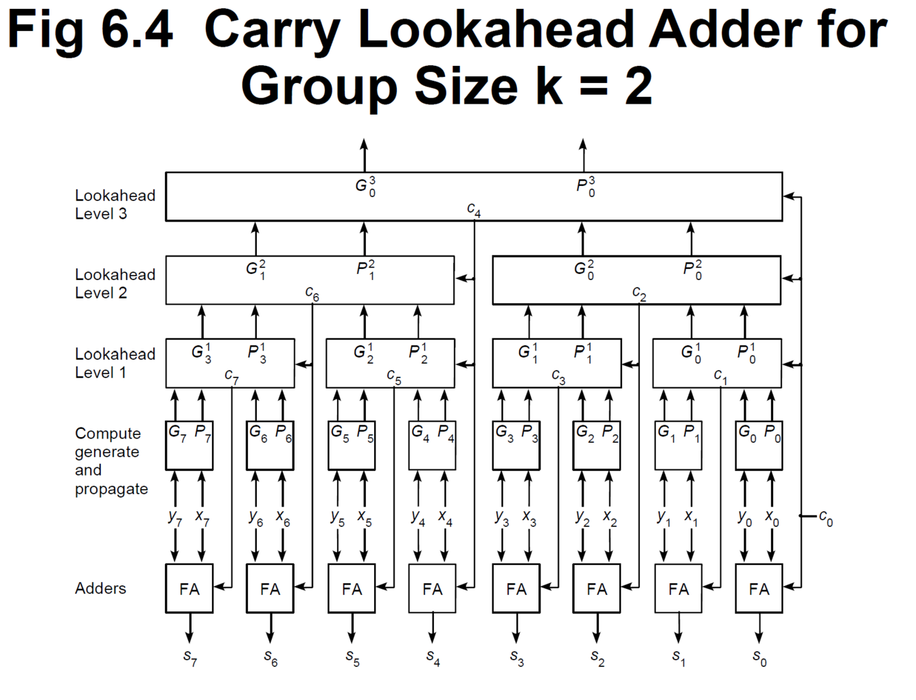 Now notice which Cj you need. You need C63, which relies on C62, which relies on C60, which relies on C56, which relies on C48, which relies on C32, which relies on C0, G’s and P’s.