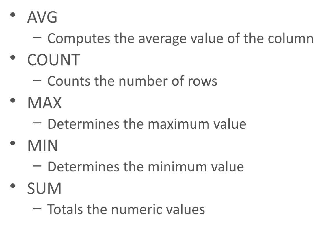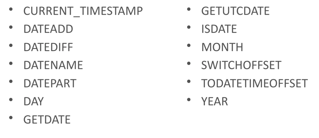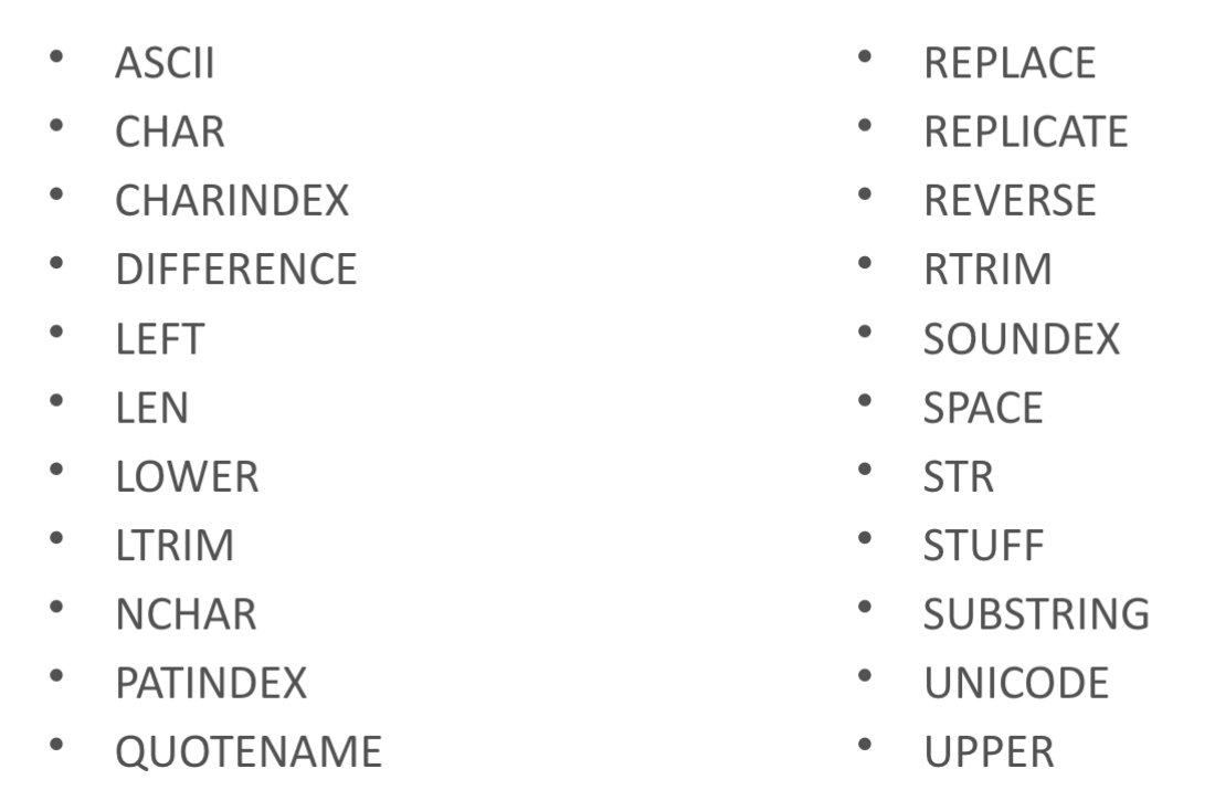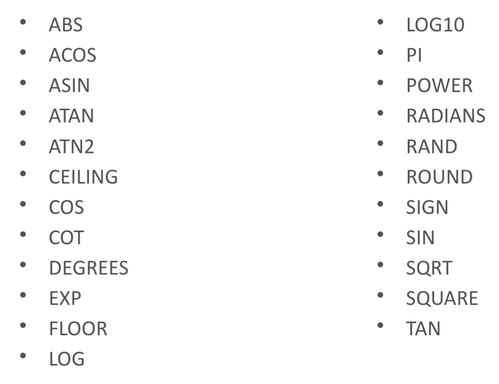 An expression can be: - A column name - Text - ‘this is a text string’, 10, last_name + ‘, ‘ + first_name - A function - LEN(‘Blake’), SQRT(144) + 5, STR(SQRT(99), 5, 3), GETDATE()