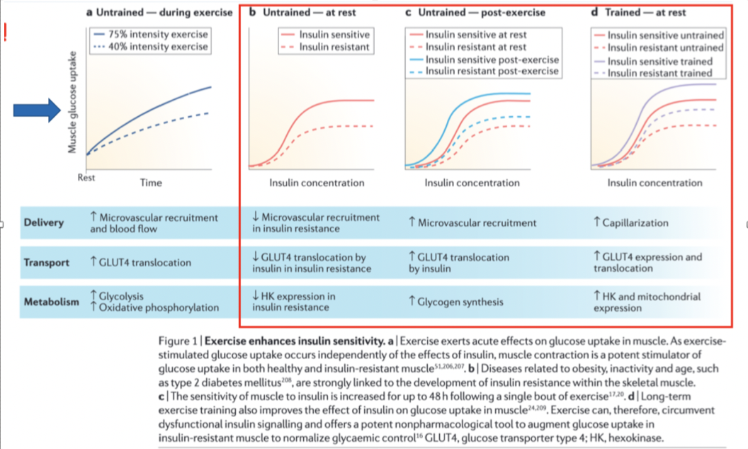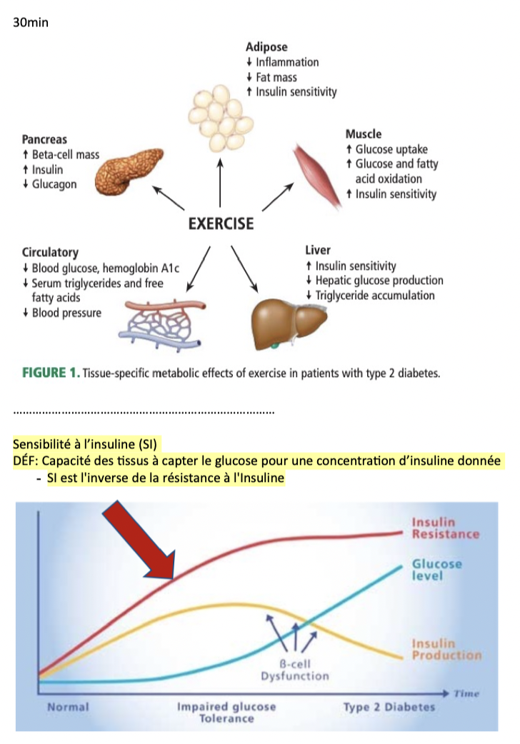2. Contraction muscu ↑ sensibilité à l’insuline pendant ++ heures post-X’s (jusqu’à 48h)