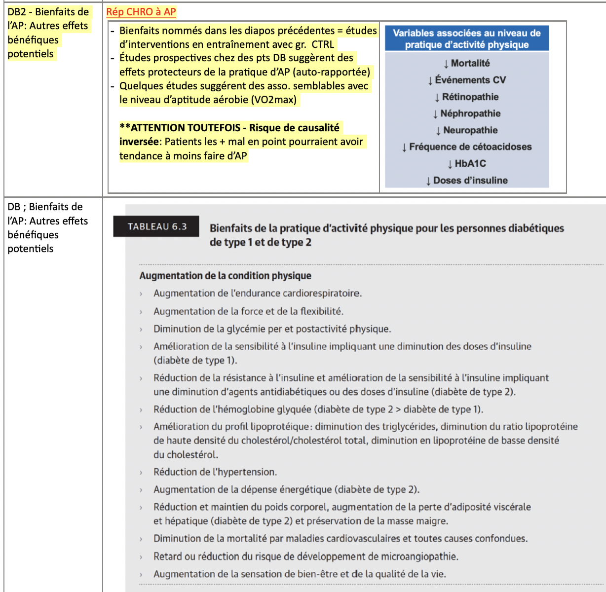 - X’s continue à haute intensité sont bonnes pour dim HBA1C (mais pas d’effet suplémementaire de haute intensité vs modérée sur l’amélioration sensibilité insuline lors X’s aérobie)