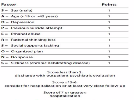 Nommez : Critères d’hospitalisation ou de consultation psychiatrique