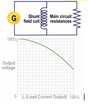 output voltage of a shunt wound dc generator … with an increase in load because …