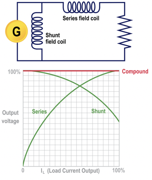 how do compound wound dc generators combine the characteristics of series and parallel to produce a steadier output voltage?