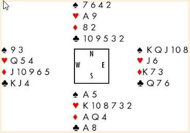 NORTH S J32 H KQJ9 D 765 C 654 SOUTH S AKQ87 H 10 D AQ43 C QJ8 4S-South Lead: Jd