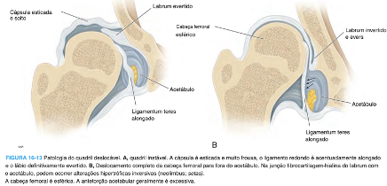 Nos quadris que permanecem luxados, desenvolvem-se barreiras secundárias à redução. No interior do acetábulo, uma camada de tecido adiposo pode se tornar espessa e impedir a redução. O ligamento redondo se alonga e engrossa, ocupando um espaço importante e dificultando a redução. A cápsula inferior do acetábulo assume um formato de ampulheta, apresentando uma abertura menor em diâmetro do que a cabeça do fêmur.