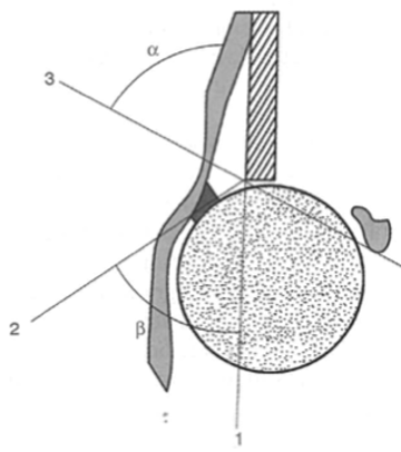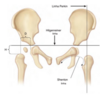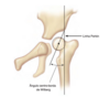 São traçadas 3 linhas. A “linha da base” é a linha do ílio que cruza as porções ósseas e cartilaginosas do acetábulo. A “linha de inclinação” é a linha ao longo da margem do acetábulo cartilaginoso. A terceira linha é a “linha do teto acetabular” ao longo do teto ósseo.