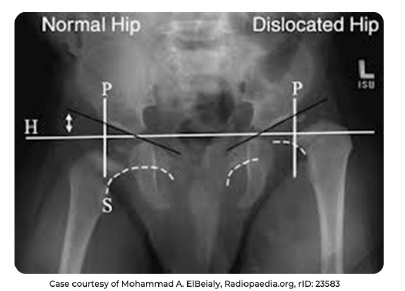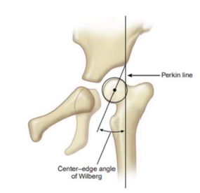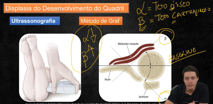 · Traça uma linha tangente ao ilíaco, que bissecte a cabeça femoral