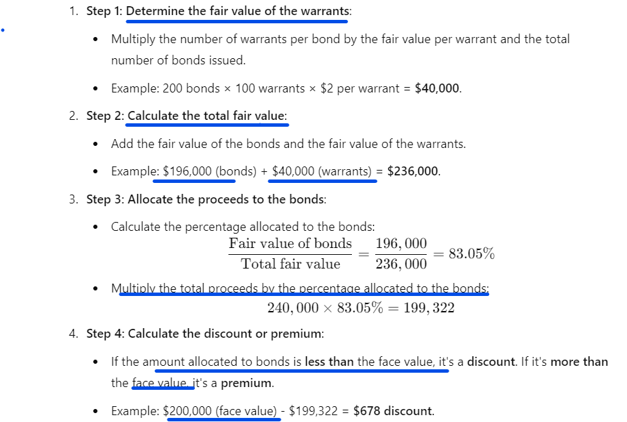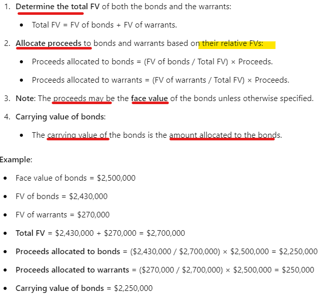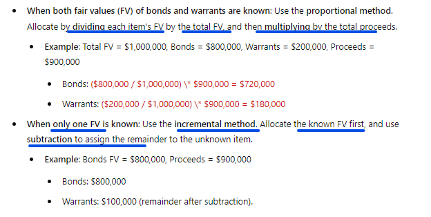 How do you allocate proceeds when both FV of bonds and warrants are known vs. only one is known?