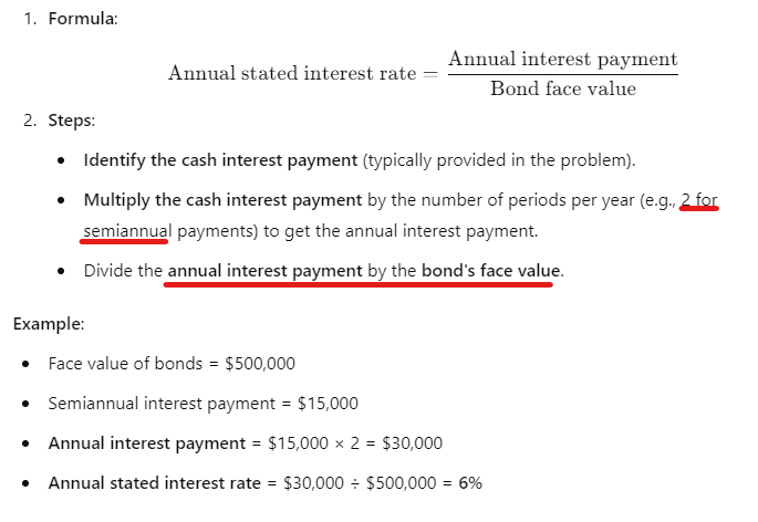How do you calculate the annual stated interest rate on bonds?