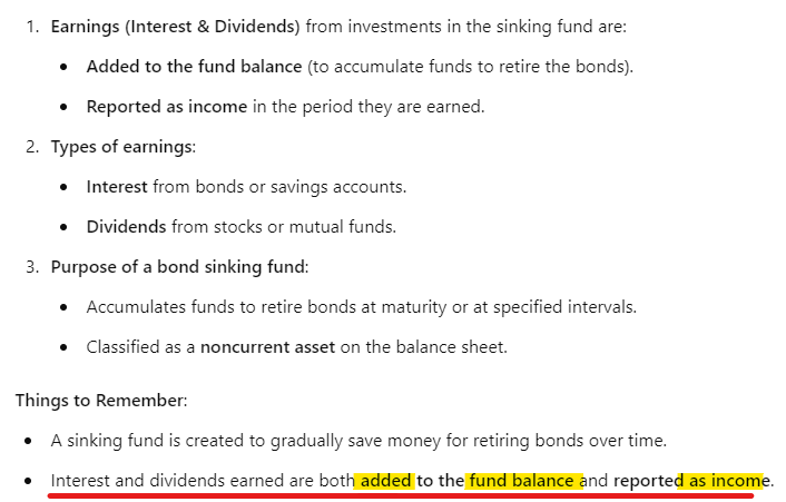 How are earnings from a bond sinking fund treated?