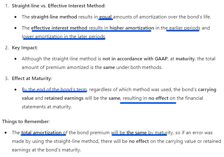 What happens if a company uses the straight-line method instead of the effective interest method to amortize bond premiums?