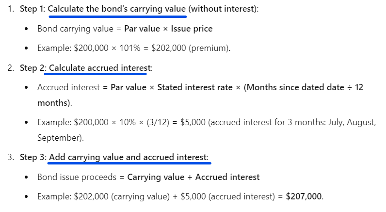 How do you calculate the total bond issue proceeds when bonds are issued after the dated date, including accrued interest?