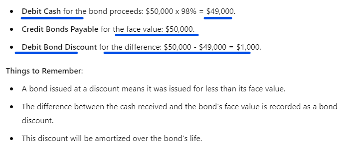 How do you JE the issuance of a bond at 98 with a face value of $50,000?