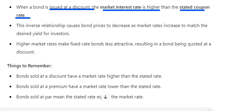 A client bought a bond at a discount. What does this say about the market interest rate compared to the stated rate?