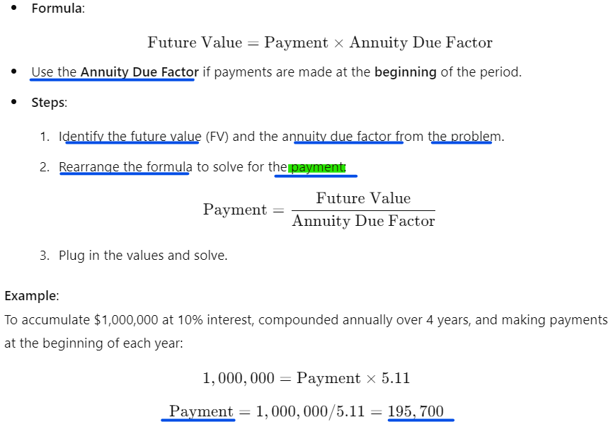 How do you calculate the required payment for an annuity due to accumulate a specific future value?