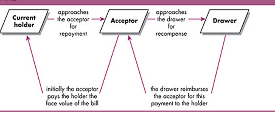 acceptor (often bank) accepts the responsibility to pay the face value on the maturity date