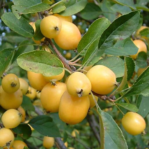 Small tree with a broad crown. White flowers in spring and followed by a profuse crop of small yellow fruit in autumn, which persist well into winter