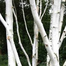 Slowing growing tree with a rounded crown. Grown for its striking white peeling bark
